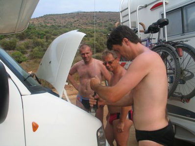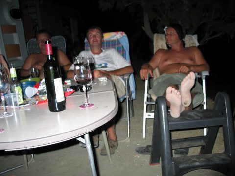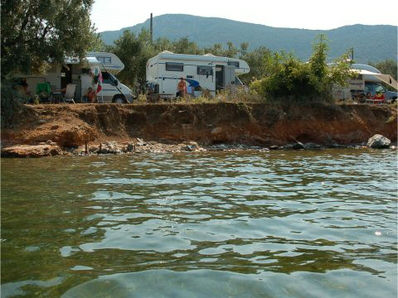Kultura človeka utrudi. Treba se bo podpreti. Nekaj km za Delfi smo zato parkirali in pokosili, povečerjali ...... Prespali smo na plaži vasi Porto Germeno. Prav zanimivo. Nobenih težav s spanjem v državi kjer je prenočevanje na divje prepovedano. Grkov sploh ne moti. Policija se vozi mimo kot da nas ne vidi. Skratka povsem drugače kot pri naših sosedih. Morje pa je bilo tu vsaj 5 stopinj hladnejše in se z lahkoto ohladiš.