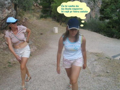 Ogrog 14. ure smo prispeli v Delfi. Razdelili smo se v tri tematske skupine. Prva je šla na "švicanje" med skale, druga na sladoled v mesto in tretja, najmanjša, je varovala kamperje in se hladila s pivom.