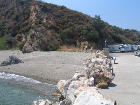 Naslednji cilj je bil končno spet plaža na kateri naj bi prespali. Jok brate, odpade. Medtem ko ostalim še ni bilo dosti ogledov smo mi parkirali ob morju in ko lezem iz vode me policaj prijazno obvesti: no camping. Prav sekirali se nismo. Z vrha je plaža izgledala lepo na licu mesta pa ..... smo videli že lepše.