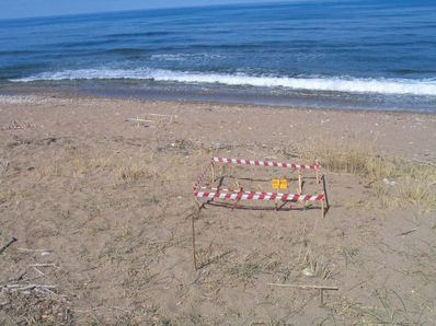 Končno smo našli kolikor toliko miren WOMO - na plaži so označena mesta kamor želve odložijo jajca.