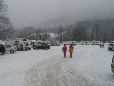 Nazadnje sva se le zbasala na parkirišče pri žičnicah - je Samo rezerviral spraznjeni parking. |