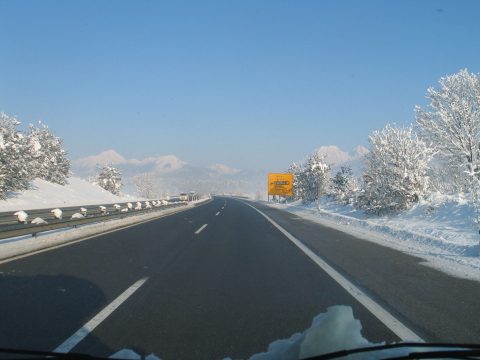 In tri dni kasneje, v petek smo bili spet na poti proti Kranjsko goro. Plan je bil, da gremo že dan prej pa je snežilo kot za stavo. Bila je zato prava zimska idila. Celo na avtocesti. |